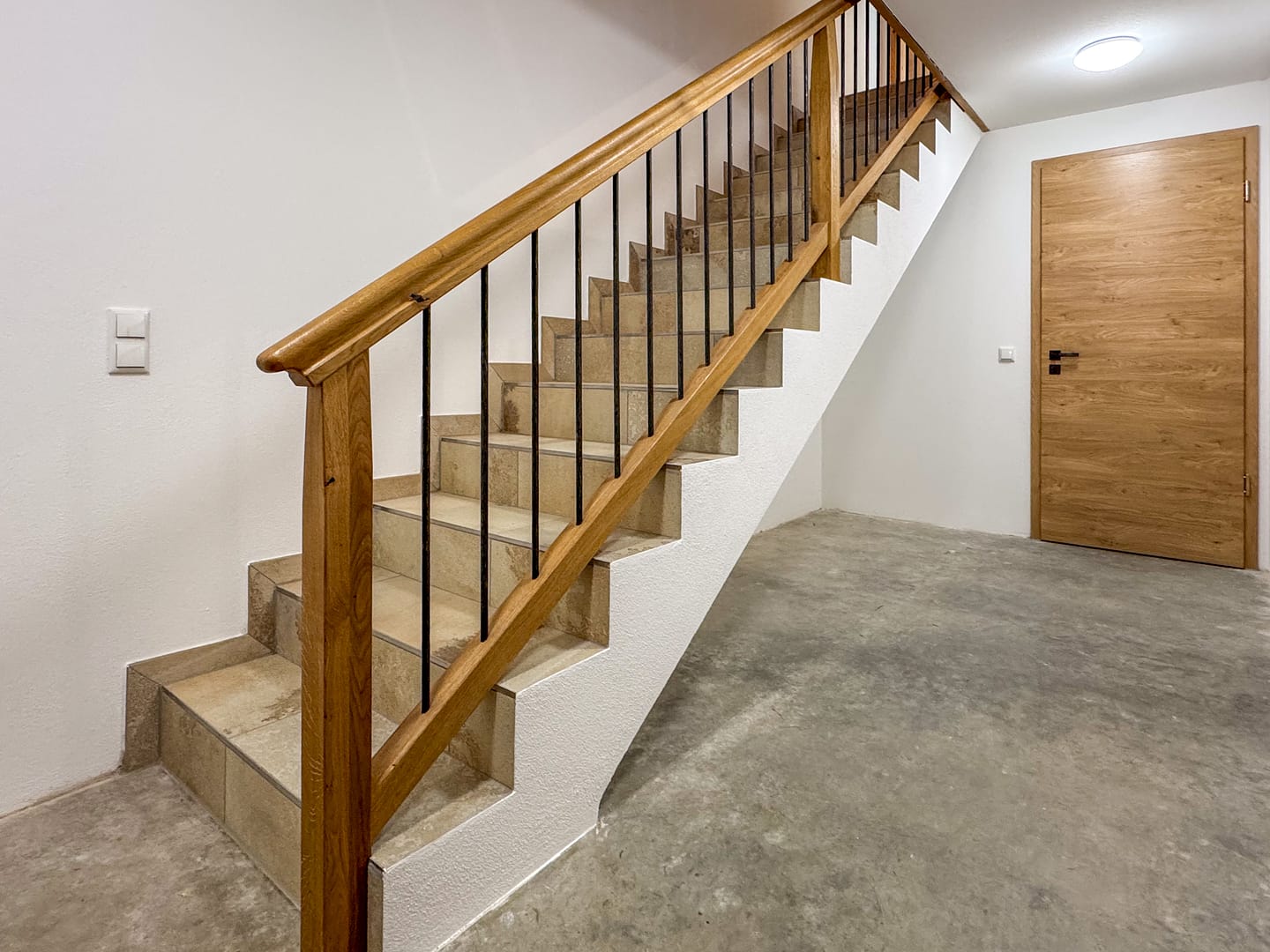 Für dieses Projekt haben wir eine maßgefertigte, moderne Treppe aus hochwertigen Materialien realisiert. Die Kombination aus warmem Eichen- und Buchenholz mit modernen Metallelementen sorgt für eine stilvolle und langlebige Konstruktion.