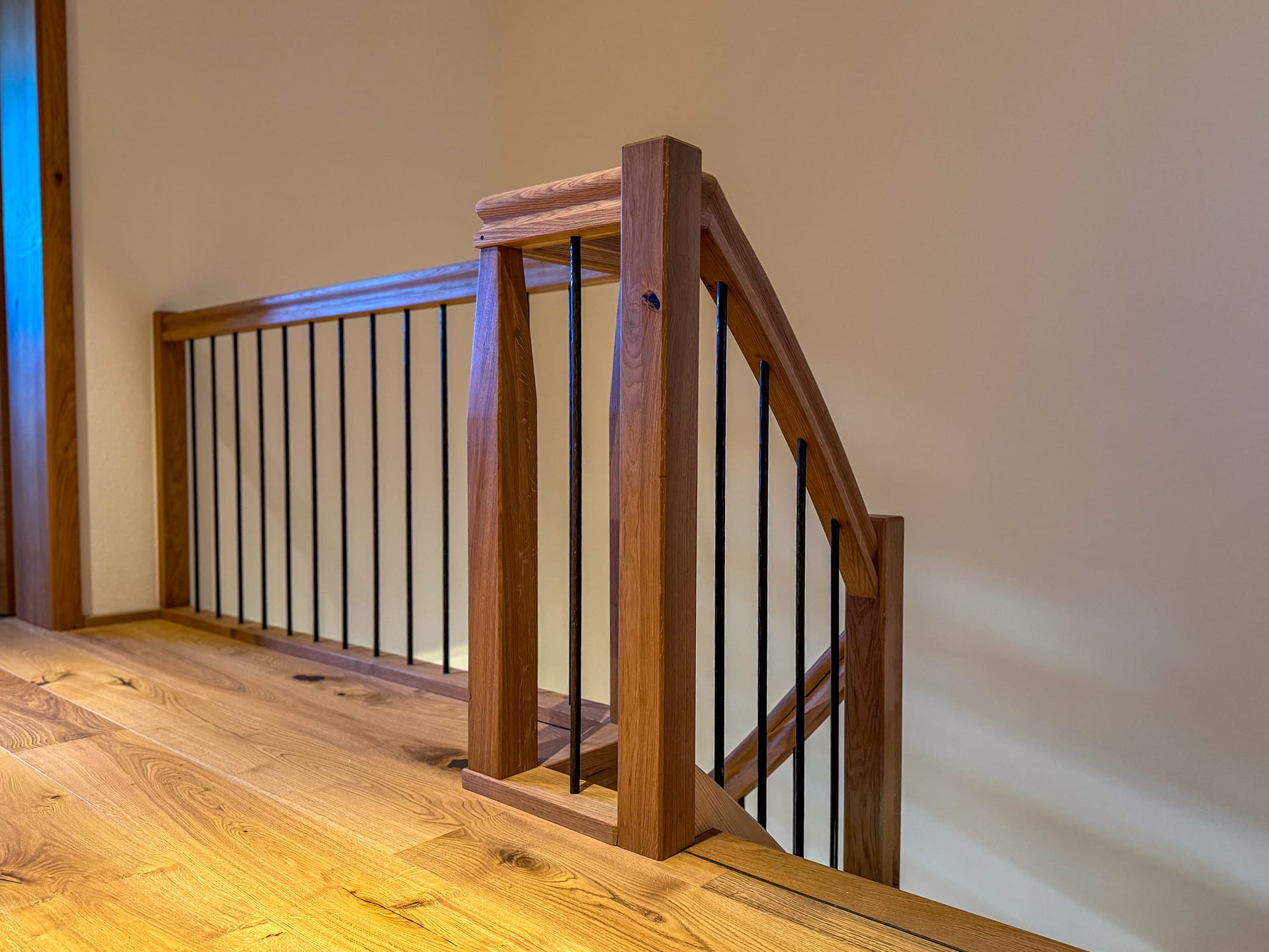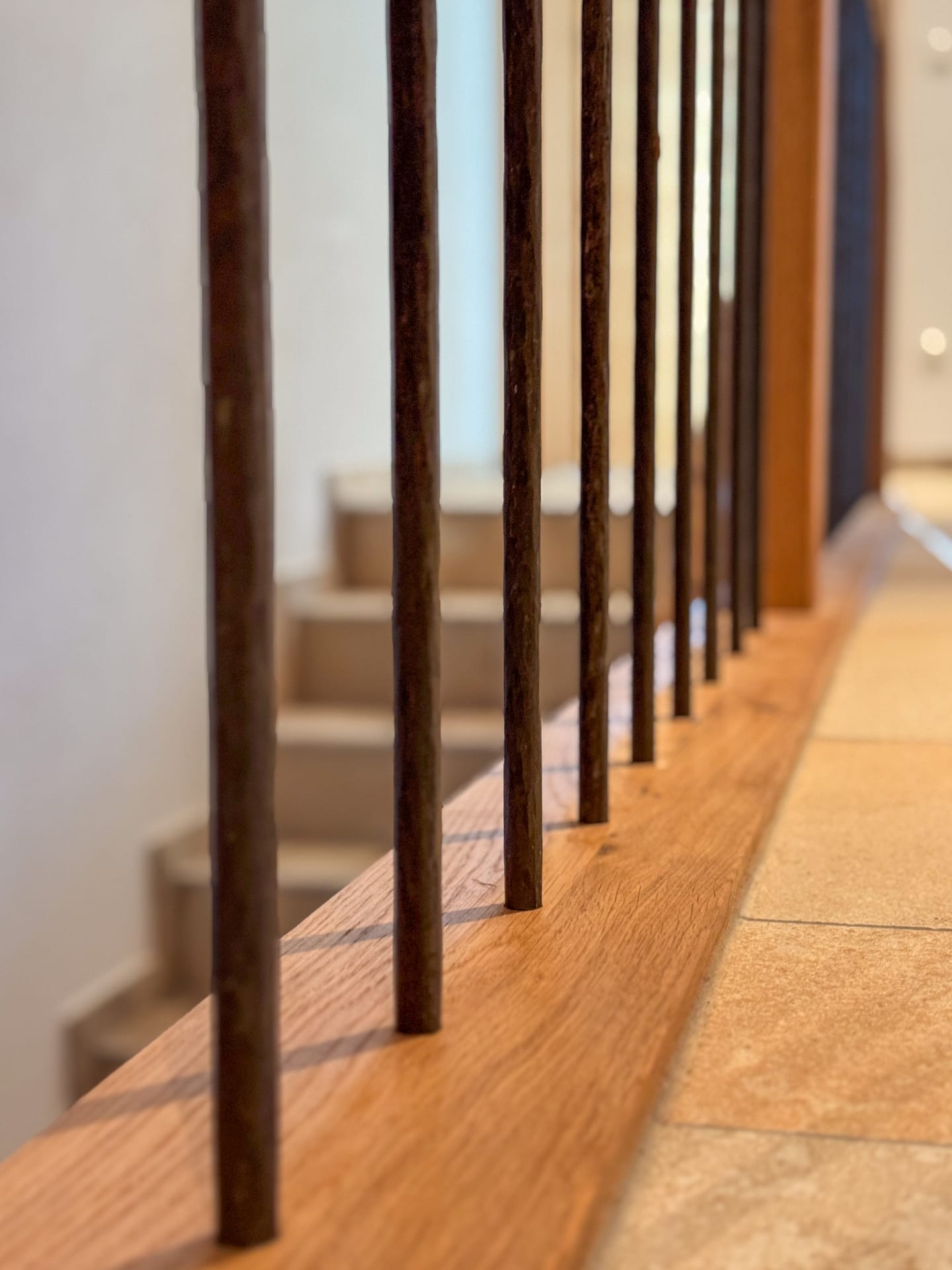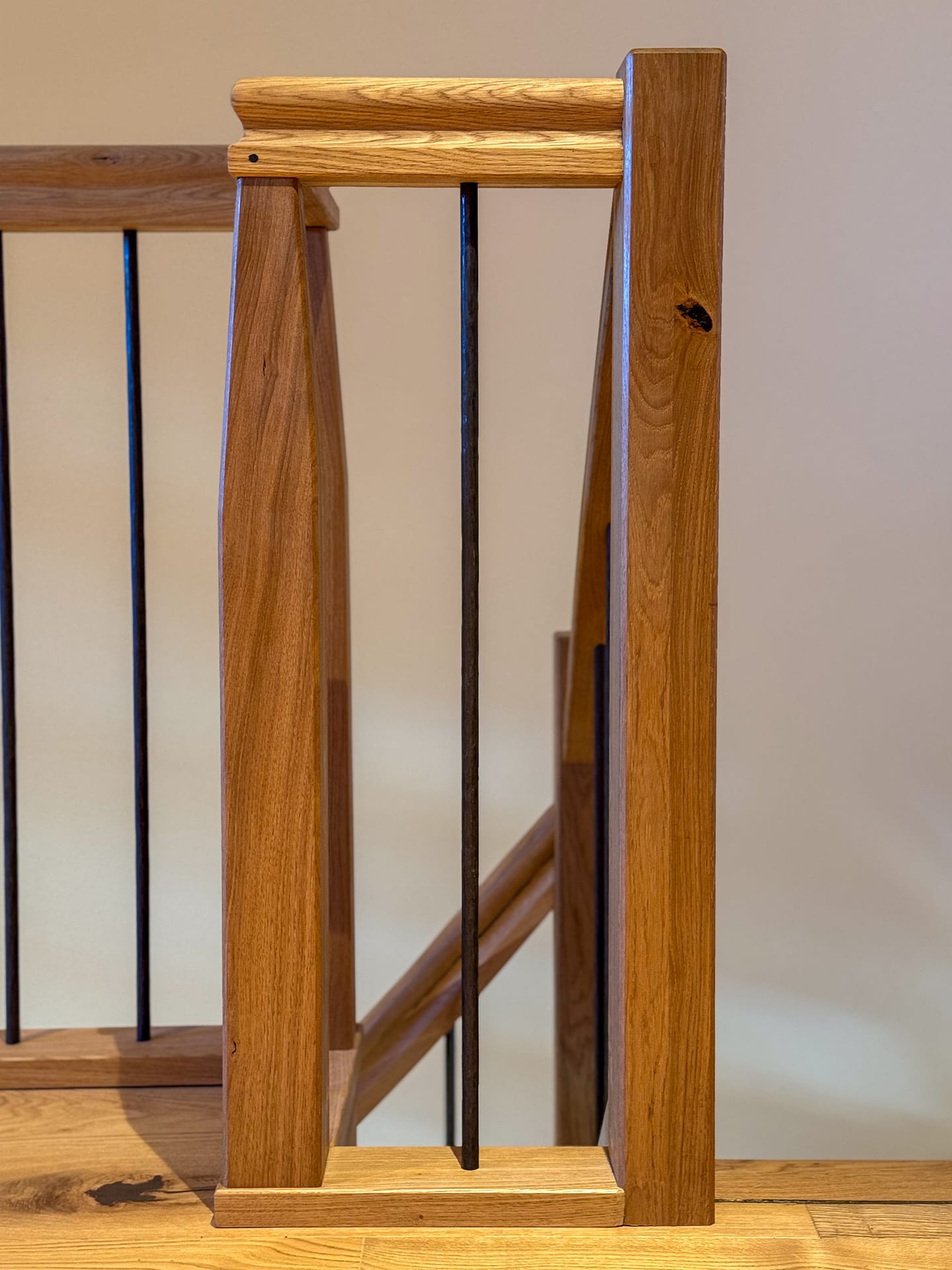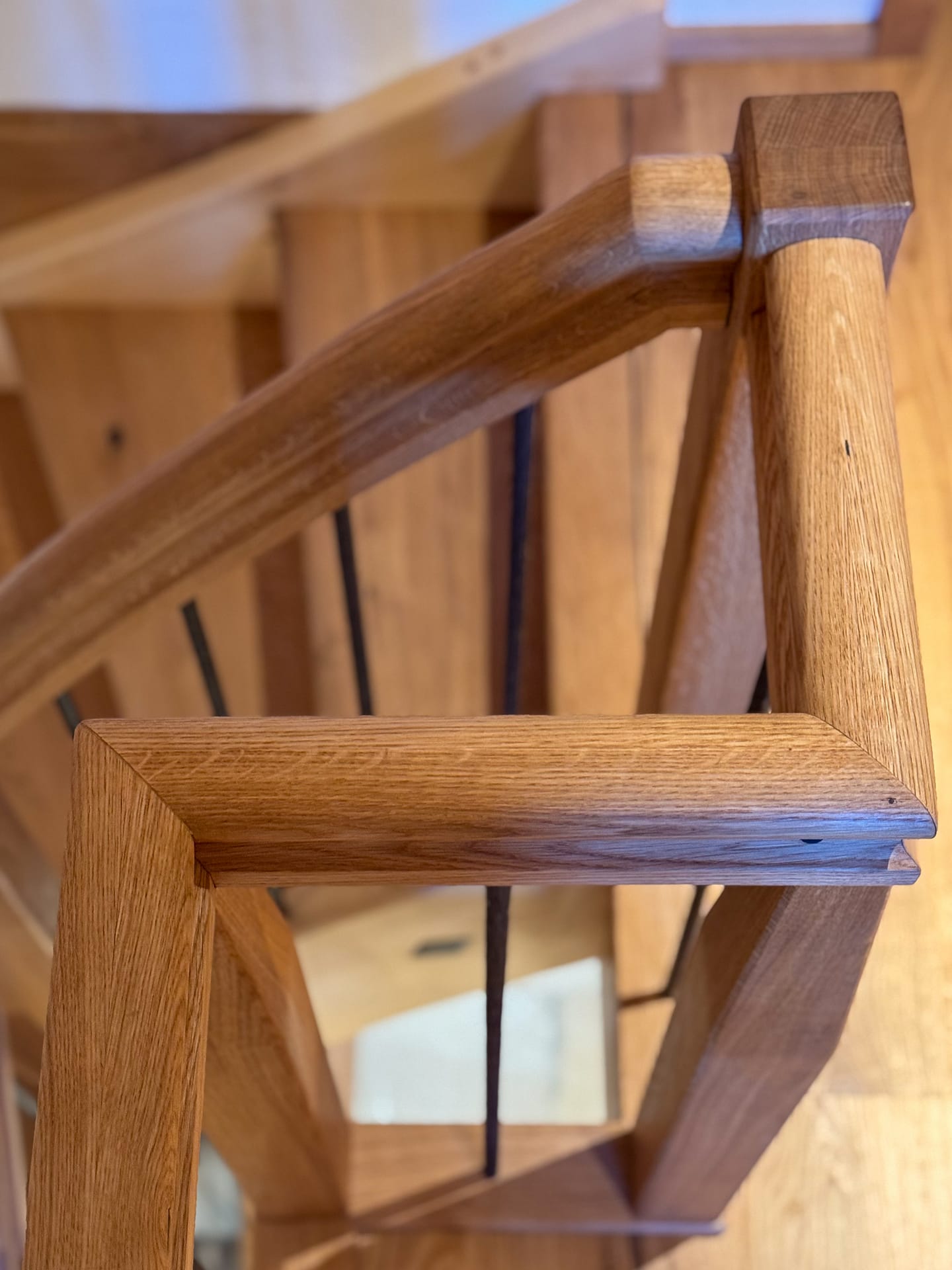 Für dieses Projekt haben wir eine maßgefertigte, moderne Treppe aus hochwertigen Materialien realisiert. Die Kombination aus warmem Eichen- und Buchenholz mit modernen Metallelementen sorgt für eine stilvolle und langlebige Konstruktion.