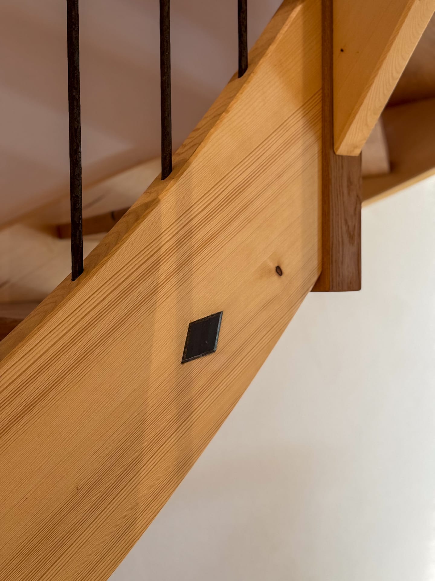 Die Treppenstufen bestehen aus robustem Eichenholz, die Tragekonstruktion aus Buche. Beides sorgt für eine natürliche Optik und hohe Widerstandsfähigkeit. Das Geländer aus Metall verleiht der Treppe eine moderne, minimalistische Ästhetik.